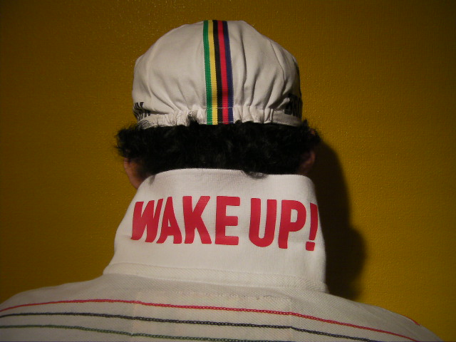 襟の裏にはWAKE UP!のプリント
