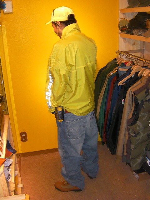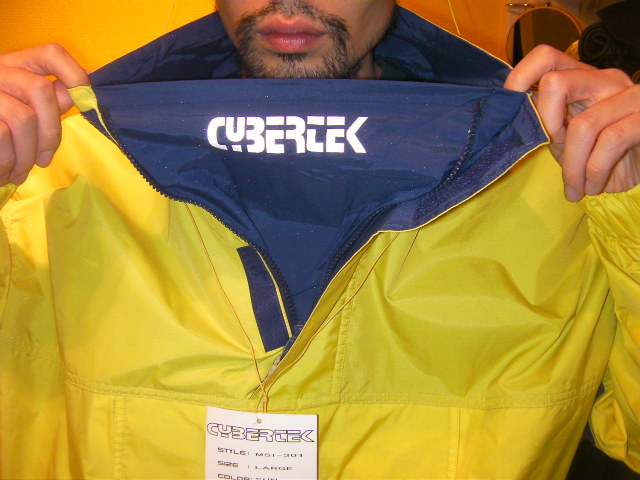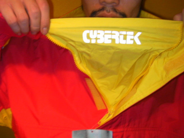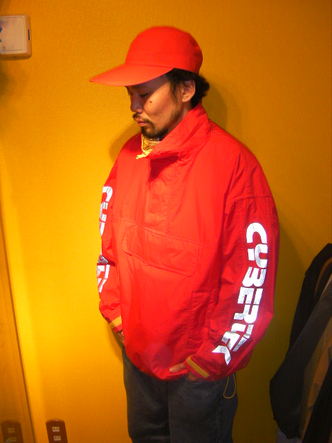 CYBERTEKのnylon anorak JKTは両袖部分に入ったブランドロゴがリフレクターになっています。